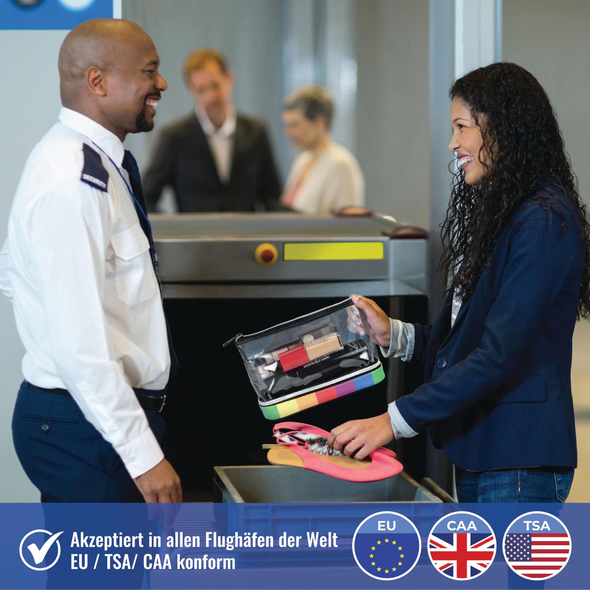 - 𝗦𝗠𝗔𝗥𝗧𝗘 𝗔𝗨𝗙𝗕𝗘𝗪𝗔𝗛𝗥𝗨𝗡𝗚 - Im durchsichtigen Waschbeutel werden die Flüssigkeiten für die Sicherheitskontrolle aufbewahrt. Im blickdichten Bereich verschwinden, Makeup, Kosmetik, Rasiersets, Zähne, Tabletten, Nagelknipser und andere Sachen.